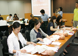 ――丸の内仲通り、乳がんのしこり触診体験